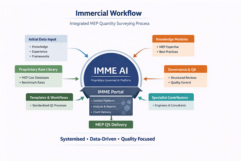 These components operate together inside the IMME Portal, and externally through process, forming a unified operating system for MEP cost consultancy.